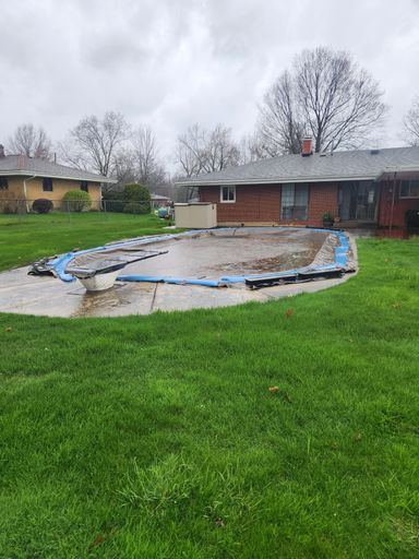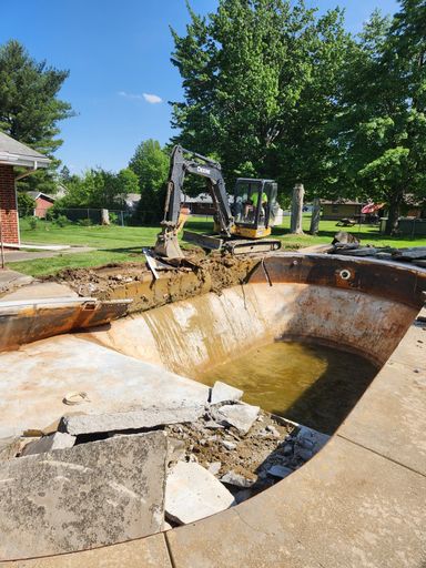 Pictures of an inground pool demolition in Macedonia, Ohio. Start to finish included site visits, permits, complete removal, backfill, seed and straw.